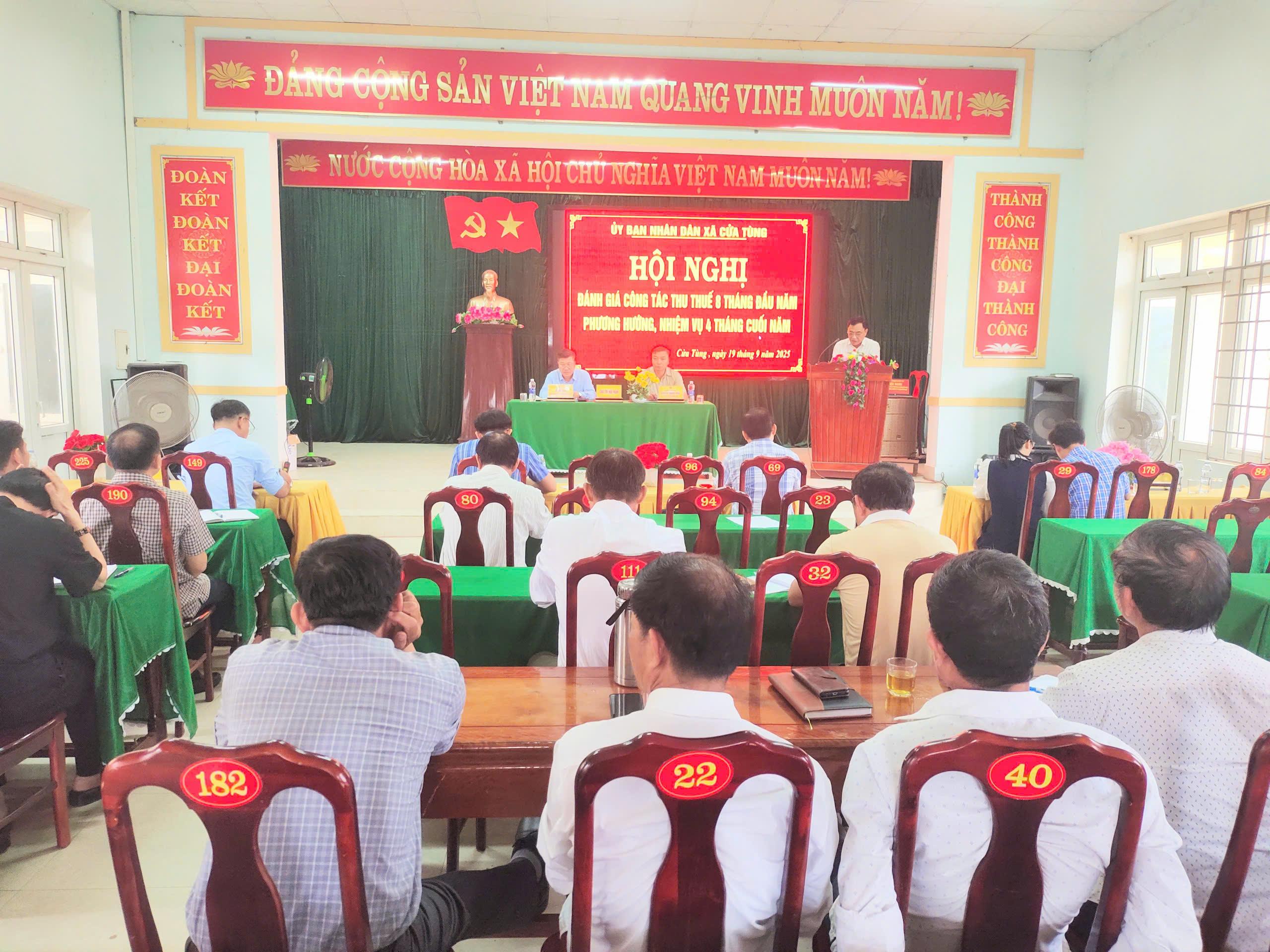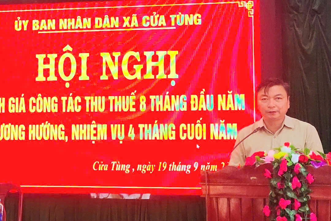 Sáng ngày 19/9/2025, tại Hội trường UBND xã Cửa Tùng, đã diễn ra Hội nghị công tác thu thuế những tháng cuối năm 2025. Hội nghị nhằm đánh giá kết quả thực hiện nhiệm vụ thu thuế 9 tháng đầu năm, đồng thời đề ra các giải pháp trọng tâm để hoàn thành chỉ tiêu thu ngân sách trong thời gian còn lại của năm.