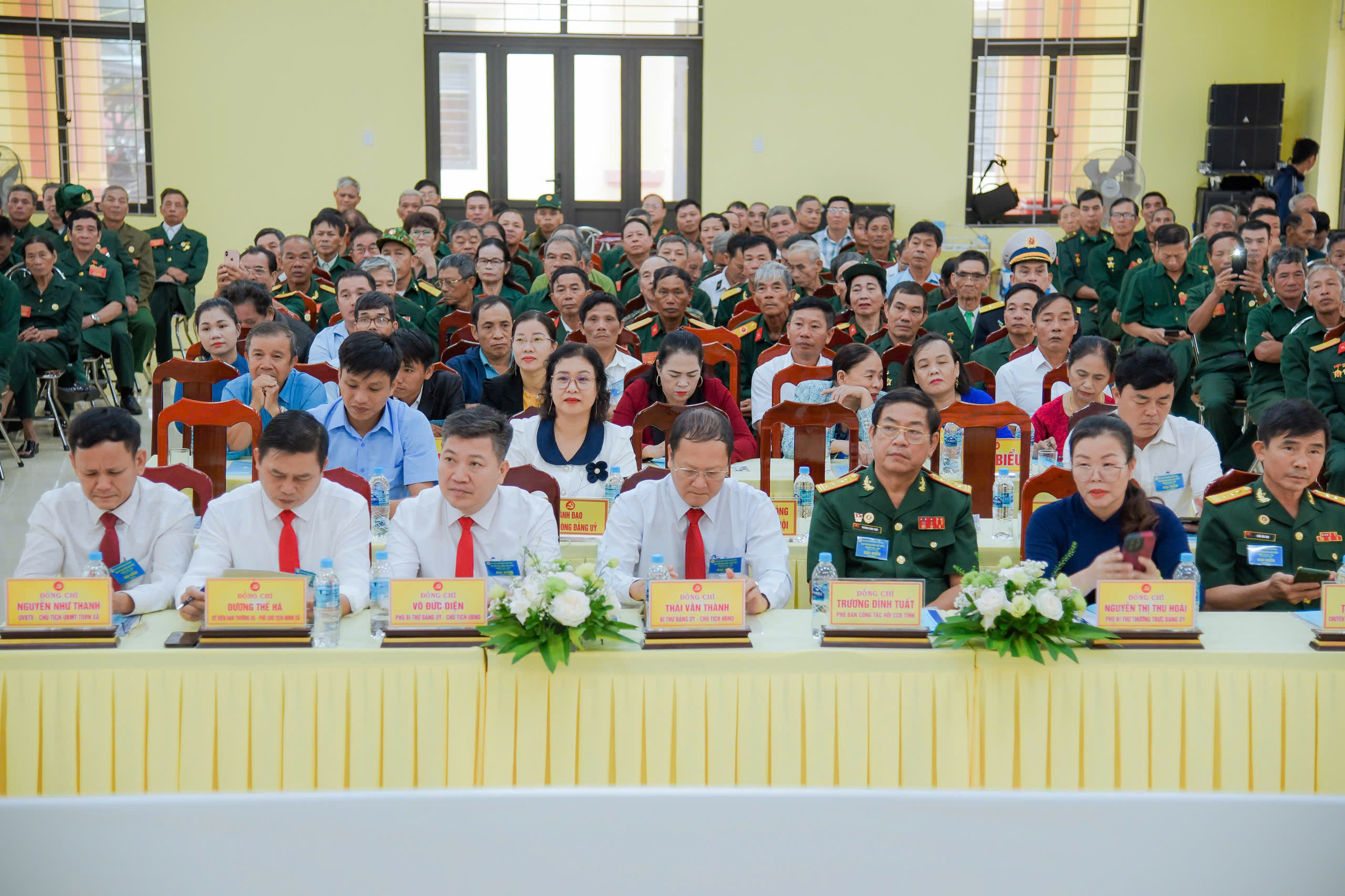 Về phía lãnh đạo xã, Đại hội vinh dự được đón tiếp: Đồng chí Thái Văn Thành – Bí thư Đảng ủy, Chủ tịch HĐND xã; Đồng chí Nguyễn Thị Thu Hoài – Phó Bí thư Thường trực Đảng ủy; Đồng chí Võ Đức Diện – Phó Bí thư Đảng ủy, Chủ tịch UBND xã; Đồng chí Nguyễn Như Thanh – Ủy viên Ban Thường vụ Đảng ủy, Chủ tịch UBMTTQVN xã; cùng đại diện lãnh đạo các ban, ngành, đoàn thể và 159 đại biểu chính thức, tiêu biểu cho trí tuệ, bản lĩnh, tinh thần đoàn kết của gần 2.488 hội viên Cựu chiến binh toàn xã.