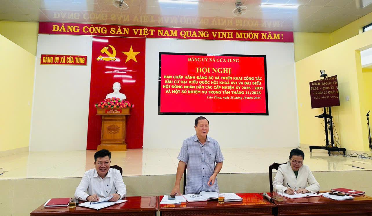 Sáng ngày 28/10/2025, Đảng ủy xã Cửa Tùng tổ chức Hội nghị Ban Chấp hành Đảng bộ xã nhằm triển khai công tác bầu cử đại biểu Quốc hội khóa XVI và đại biểu Hội đồng nhân dân các cấp nhiệm kỳ 2026 – 2031, đồng thời thảo luận và đề ra một số nhiệm vụ trọng tâm trong tháng 11/2025.