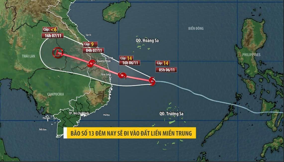 Đây là cơn bão rất mạnh, sau khi vào Biển Đông có khả năng tiếp tục mạnh thêm, dự kiến đổ bộ vào đất liền Trung Bộ từ tối 06/11 đến sáng ngày 07/11.