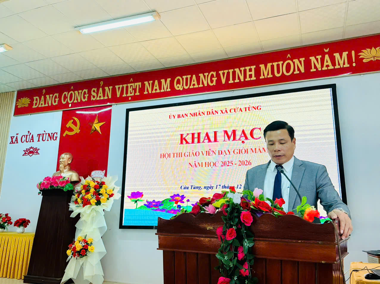 Sáng ngày 17/12/2025, tại Hội trường UBND xã Cửa Tùng, Ủy ban nhân dân xã tổ chức khai mạc Hội thi giáo viên dạy giỏi năm 2025 nhằm tạo sân chơi chuyên môn, khuyến khích đội ngũ giáo viên đổi mới phương pháp giảng dạy, nâng cao chất lượng giáo dục trên địa bàn.
