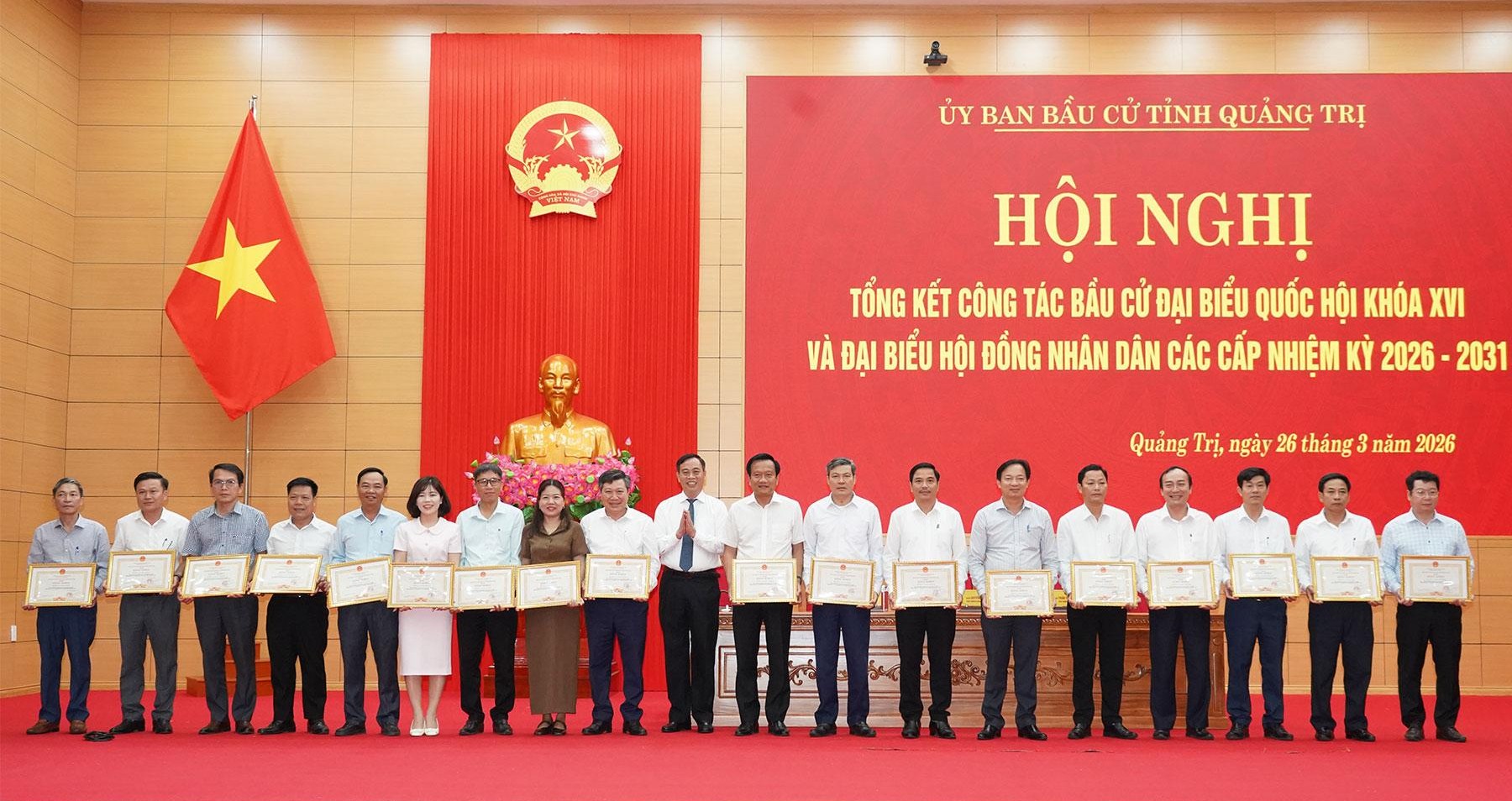 Sáng 26.3, tỉnh Quảng Trị tổ chức Hội nghị tổng kết công tác bầu cử đại biểu Quốc hội khóa XVI và đại biểu Hội đồng nhân dân các cấp nhiệm kỳ 2026-2031.