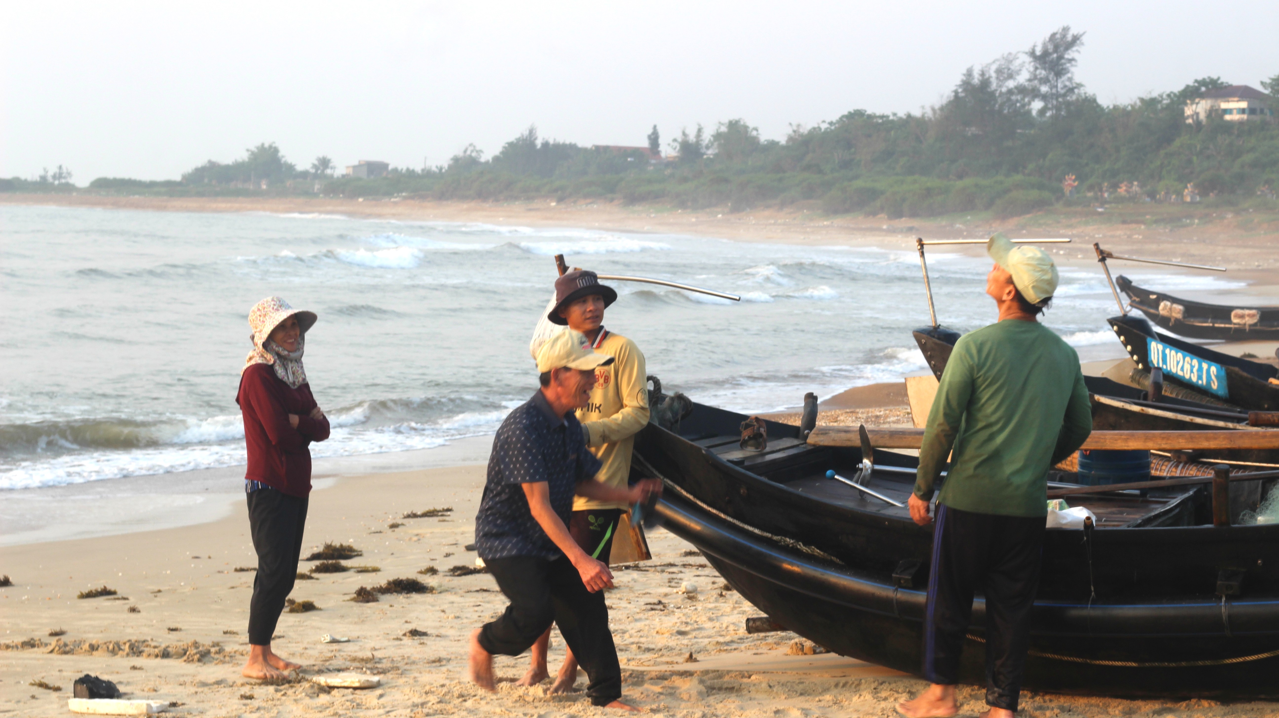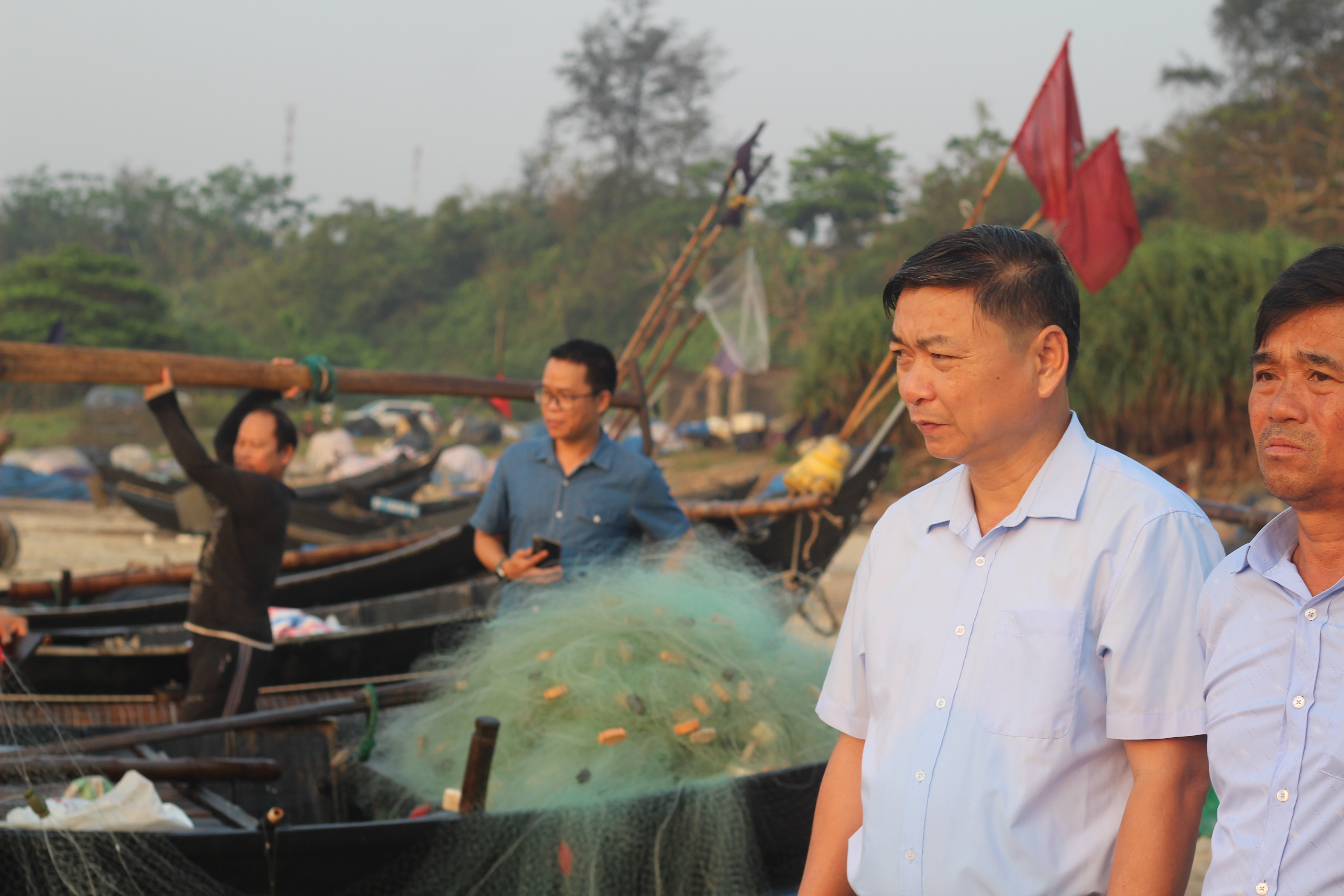 Đoàn đã tiến hành khảo sát thực tế tại các thôn Vịnh Mốc và Bắc Bàn, trực tiếp gặp gỡ, trao đổi với ngư dân để nắm bắt tình hình sản xuất, khai thác thủy sản cũng như những khó khăn, thách thức đang gặp phải trong quá trình mưu sinh trên biển. Bên cạnh đó, đoàn cũng lắng nghe các đề xuất, kiến nghị của người dân liên quan đến sinh kế, bảo vệ nguồn lợi thủy sản và môi trường biển.