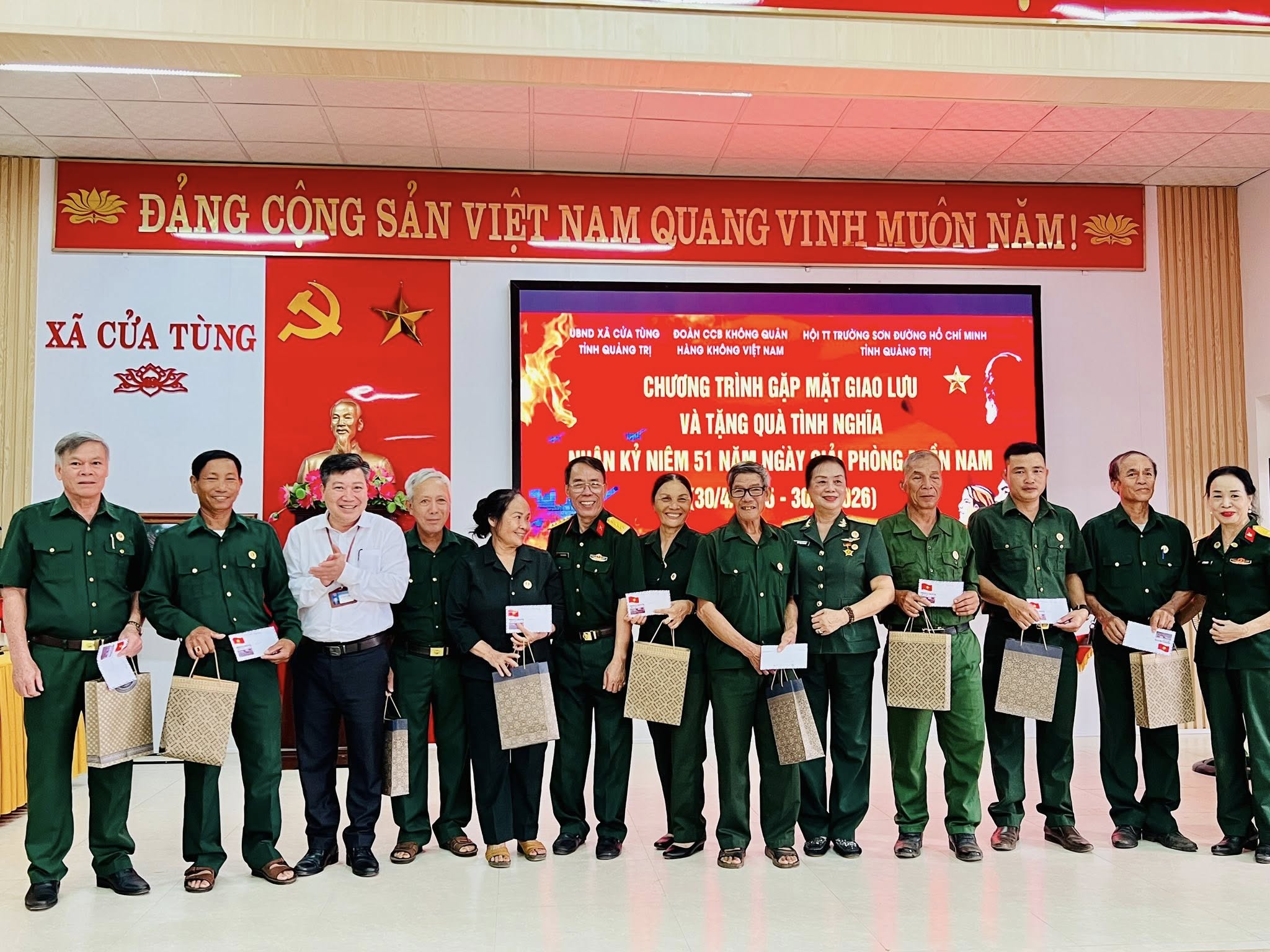 Nhân dịp kỷ niệm 51 năm Ngày Giải phóng miền Nam, thống nhất đất nước (30/4/1975 – 30/4/2026), ngày 17/4/2026, UBND xã Cửa Tùng phối hợp với Đoàn Cựu chiến binh Không quân – Hàng không Việt Nam và Hội Truyền thống Trường Sơn đường Hồ Chí Minh tỉnh Quảng Trị đã tổ chức các hoạt động ý nghĩa tri ân trên địa bàn xã.