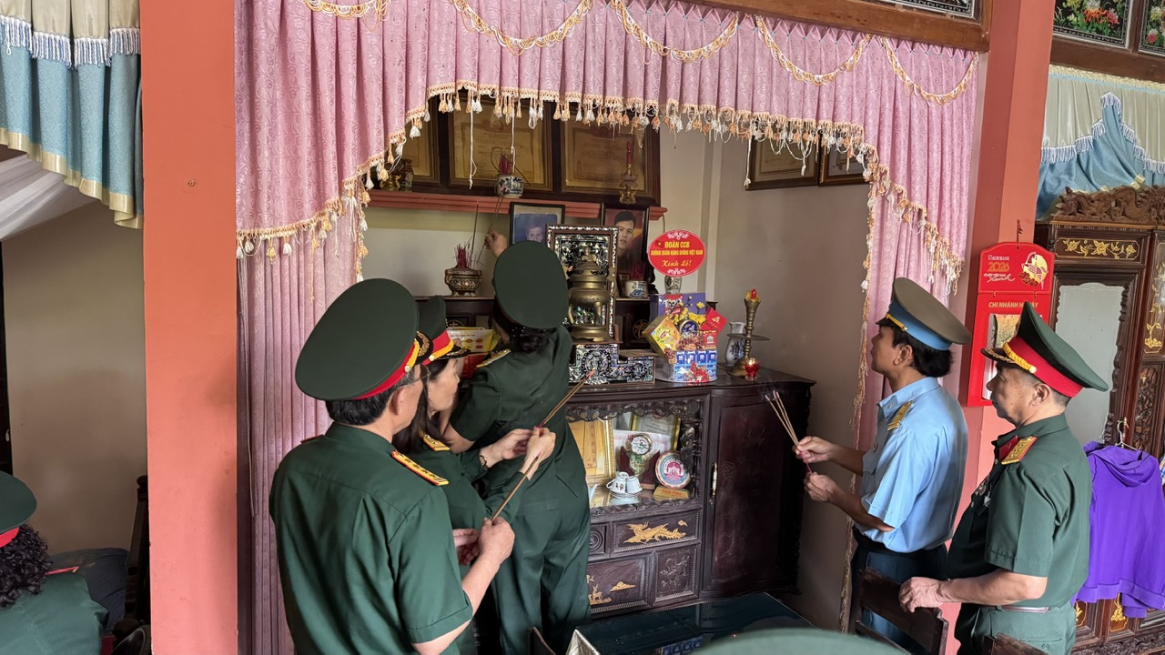 Đại diện đoàn thắp hương cho liệt sỹ tại gia đình